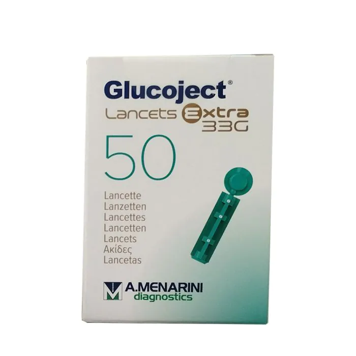 Οι Glucoject Lancets Plus 33G είναι αποστειρωμένες, μιας χρήσης ακίδες (σκαρφιστήρες) που χρησιμοποιούνται για τη λήψη τριχοειδικού αίματος μέσω τρυπήματος του δακτύλου. Με εξαιρετικά λεπτή διάμετρο 33G (0,20 mm), προσφέρουν άνετη και ανώδυνη εμπειρία κατά τη διαδικασία της μέτρησης γλυκόζης.ομα.
